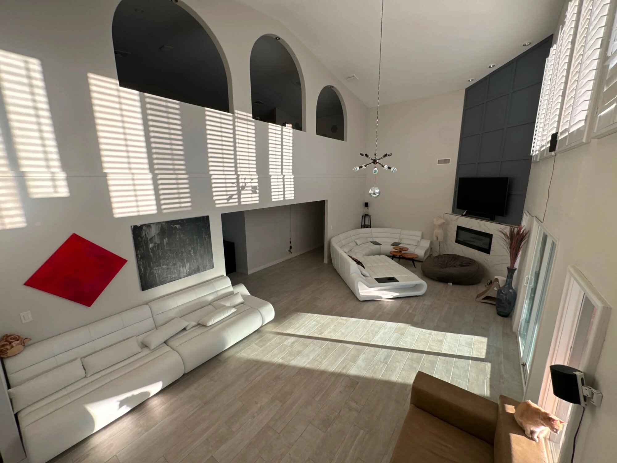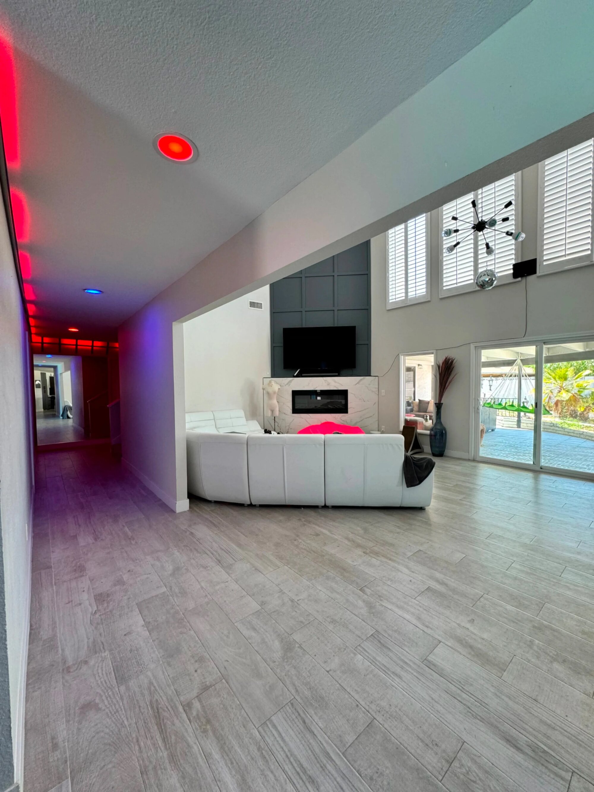 Rozsiahly moderný content house navrhnutý pre profesionálnu tvorbu. Priestor ponúka veľkú obývačku s kuchyňou, viacero spální s rozdielnym vizuálnym štýlom a exteriér s bazénom a vírivkou pre resortový look. Súčasťou je aj party miestnosť s lasermi, hmlou, DJ technikou a ozvučením, vhodná na hudobný a nočný obsah. Možná je rezervácia celého objektu alebo jednotlivých scén podľa dĺžky prenájmu. Priestor je veľký takže tu zmestíte viac ľudí alebo postavíte väčšiu crew bez toho aby ste sa tlačili. Dvere vedú von na dvor. Stropy sú dosť vysoké na to aby ste nemali problém s priestorom pre svetlá alebo boom mics.