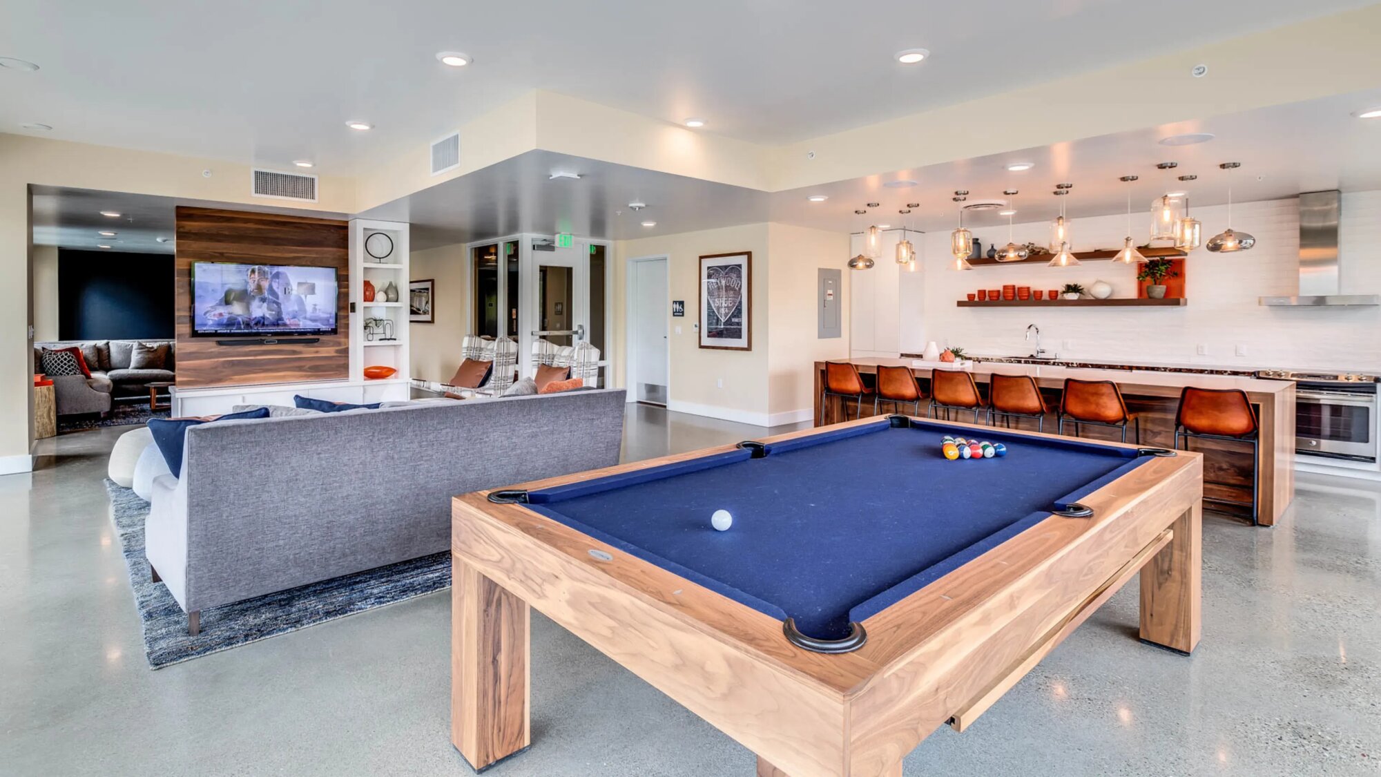 Prenajímam lounge priestor kde všetko prechádza do seba - kuchyňa, sedenie s TV, biliardový stôl. Nie sú delené miestnosti. Ostrov v kuchyni má šesť stoličiek na jednej strane, fungujú ako bar alebo jedálenský pult podľa toho čo potrebujete. Lampy nad pultom idú zapnúť jednotlivo, každá má iný tvar takže môžete hrať s tým aké svetlo kde chcete. TV je zapustená v stene, dá sa zapnúť a používať normálne. Biliard sa nedá rozobrať ale okolo neho je dosť priestoru na kamery. Sedačky idú posunúť ak treba upraviť usporiadanie. Veľké okná pusťajú dosť denného svetla, plus máte klasické stropné svetlá čo viete ovládať samostatne. Terasa je prístupná cez posuvné dvere, čiže keď potrebujete exterier hneď vedľa, máte to na dosah.