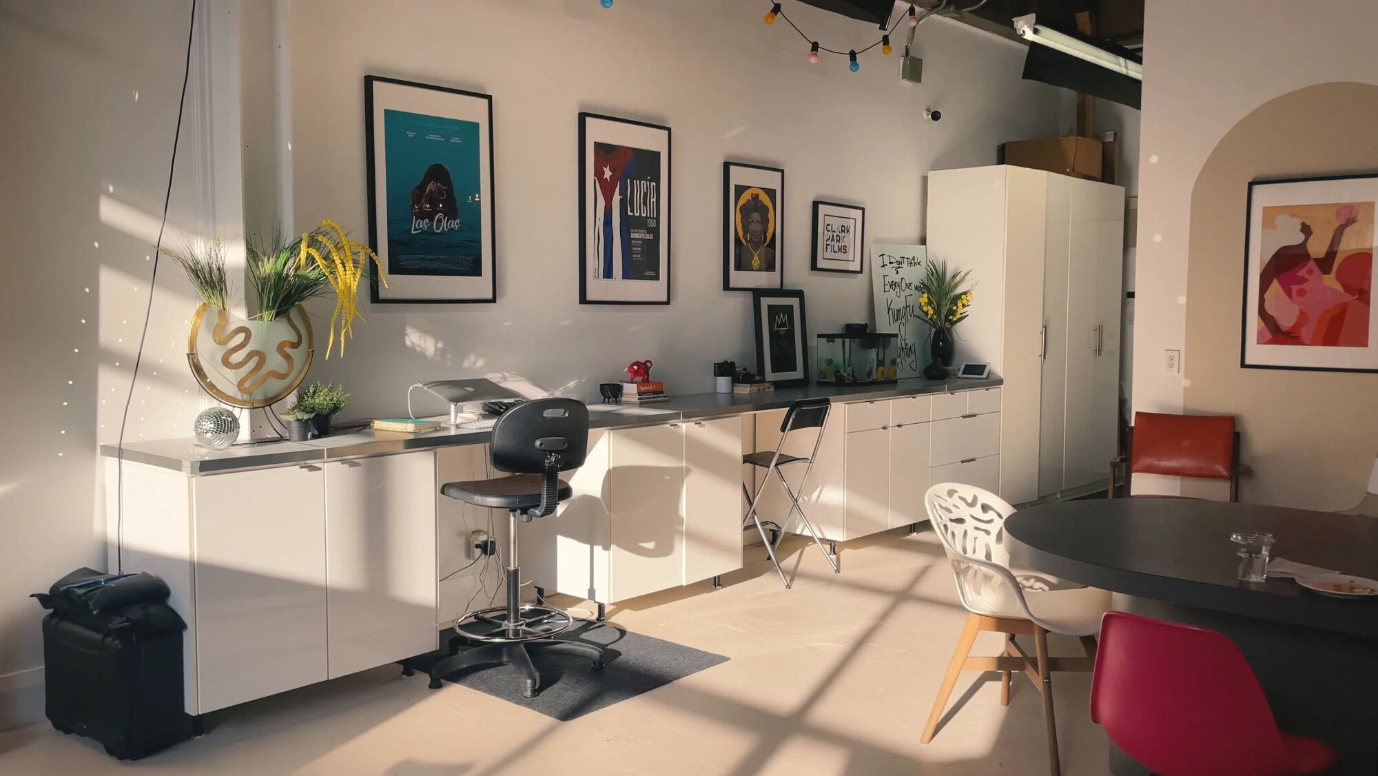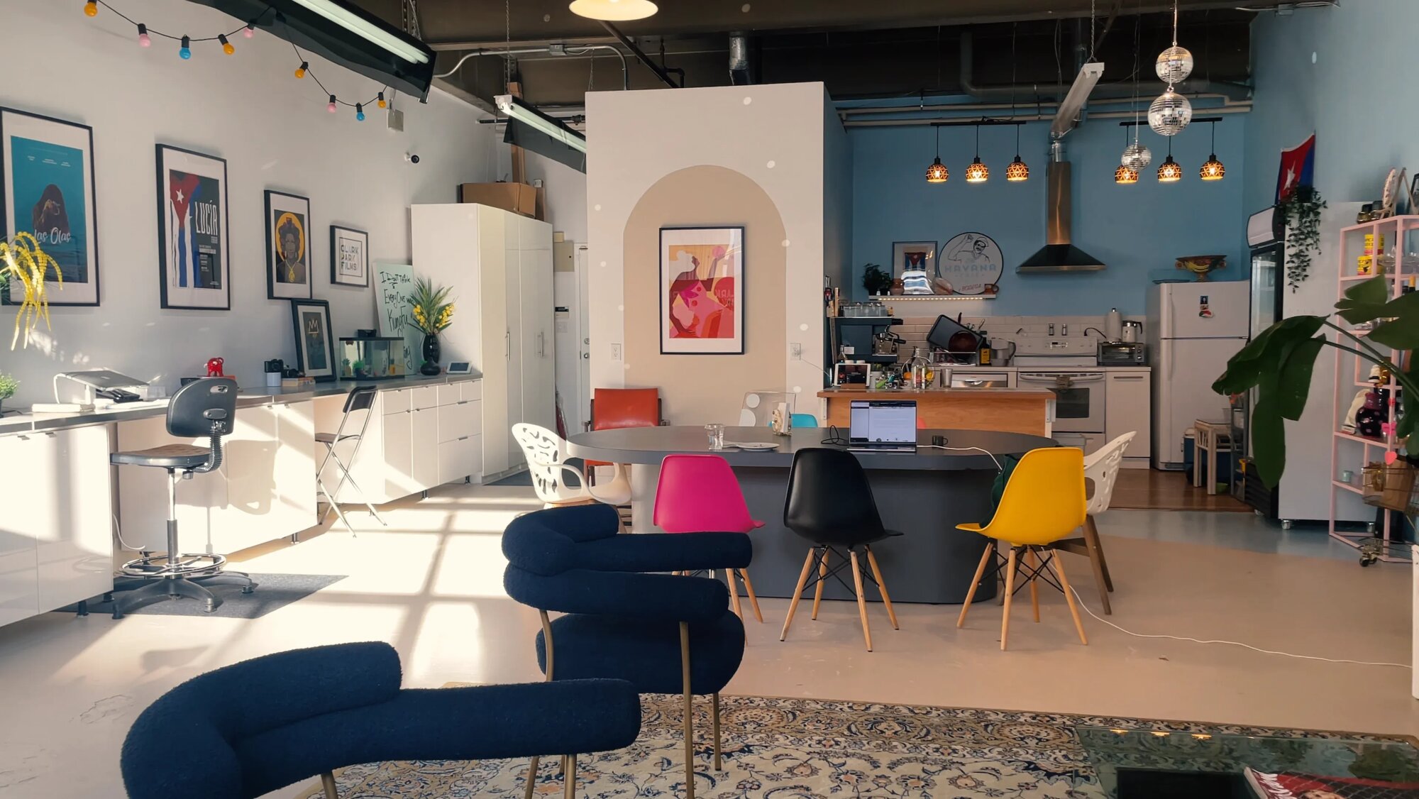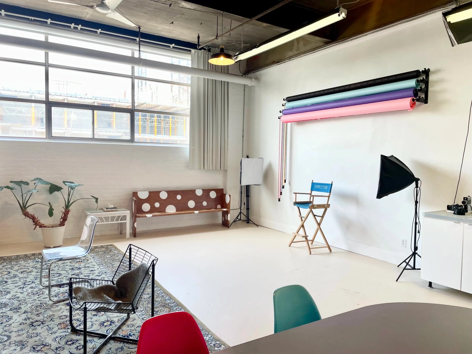 Všestranné kreatívne štúdio navrhnuté pre plynulú produkciu a spoluprácu. Priestor ponúka veľkú lounge zónu, konferenčný stôl pre až 10 osôb a dve pracovné stanice vhodné na hair & make-up. K dispozícii je kuchyňa, rýchle Wi-Fi a sedem farebných pozadí vrátane green screenu. Konzistentné denné svetlo zlepšuje prácu s obrazom a znižuje potrebu dodatočného svietenia. Štúdio je vhodné pre writers’ room, workshopy, fotenie, nahrávanie podcastov aj menšie eventy. Dispozícia je čistá a ľahko prispôsobiteľná podľa potreby projektu.