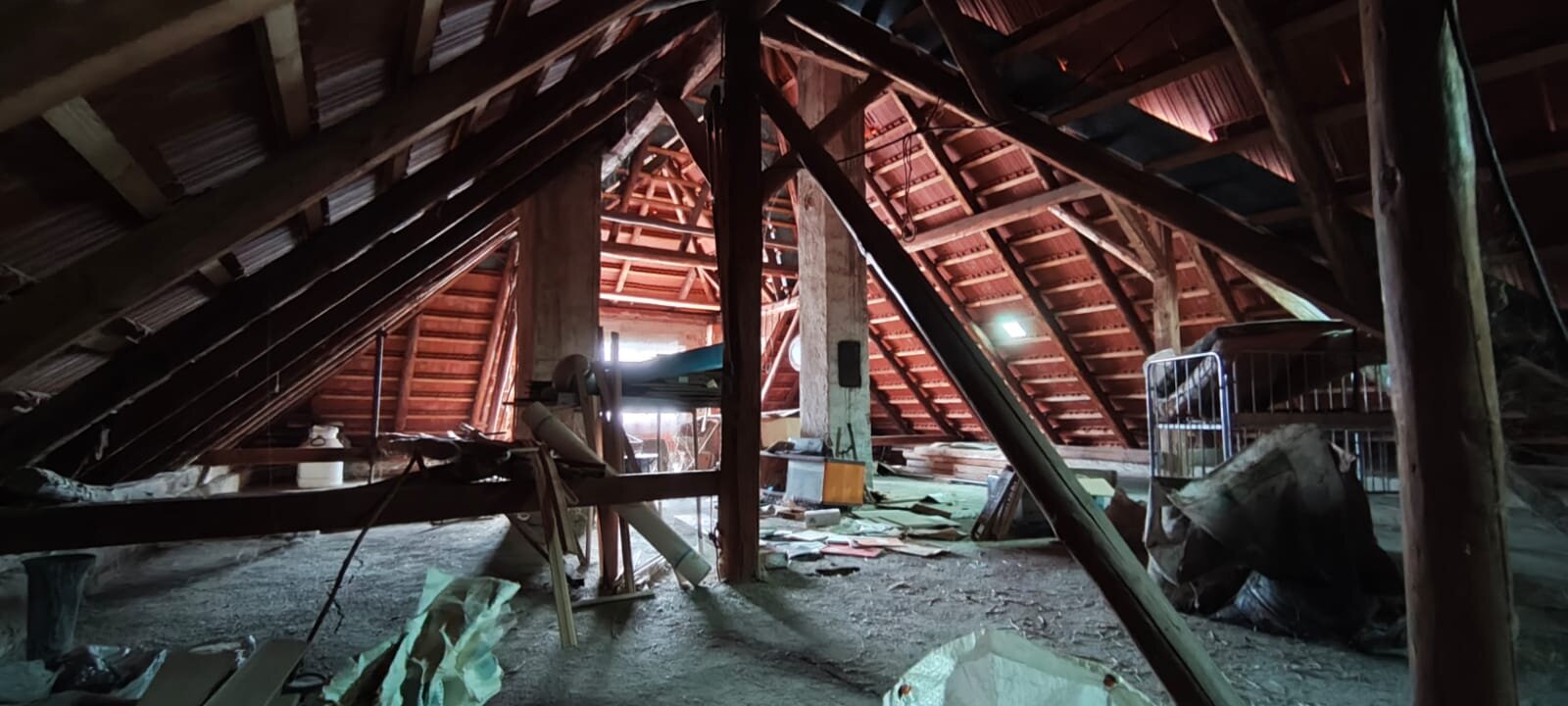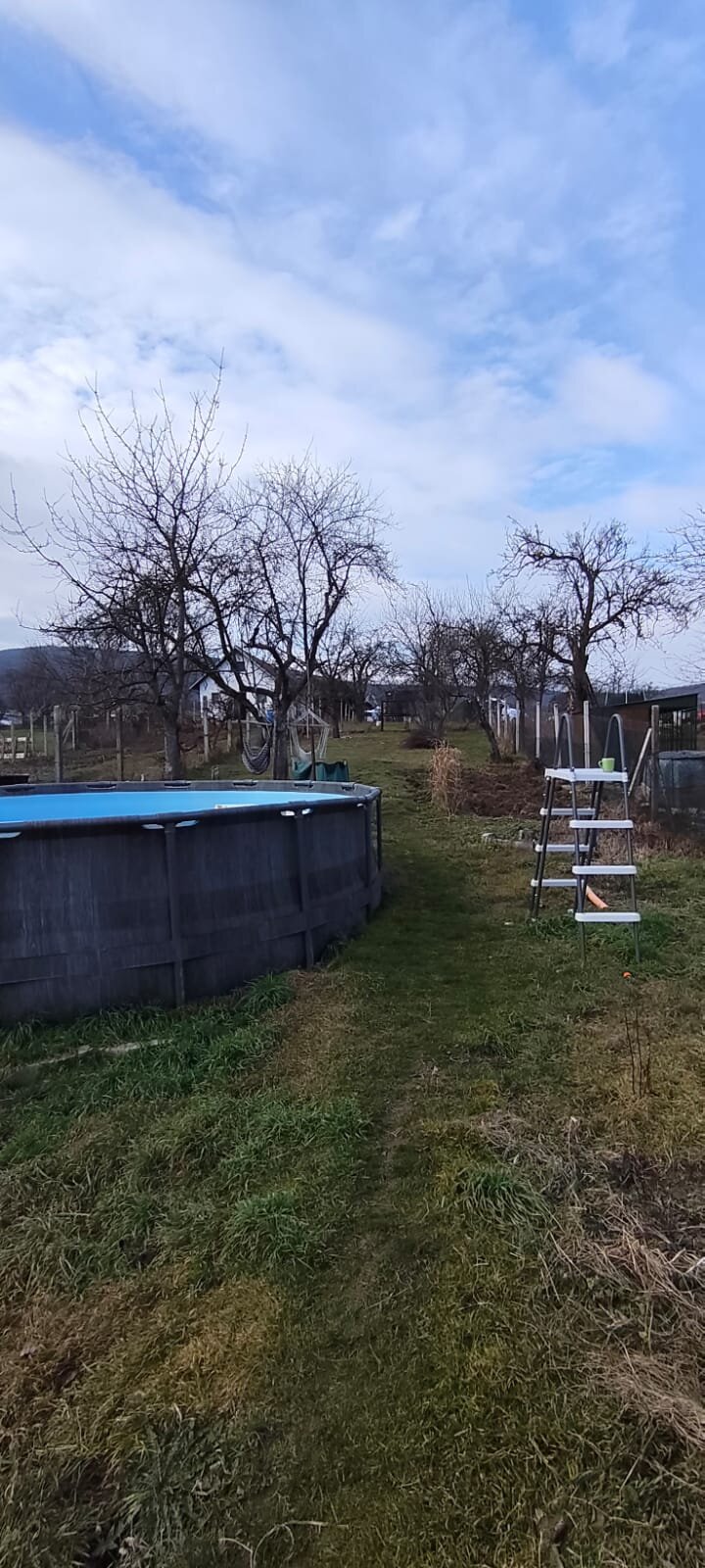 Pozemok rozdeleny na 2 casti. Prva cast svahovita kde sa nachadza aj zahrada a bazen,stromy. Druhy pozemok uz nie je svahovity tam sa nachadza trampolina a 3 velke stromy. Neprerobena nepouzivana poval s vecami este po predoslych majiteloch .