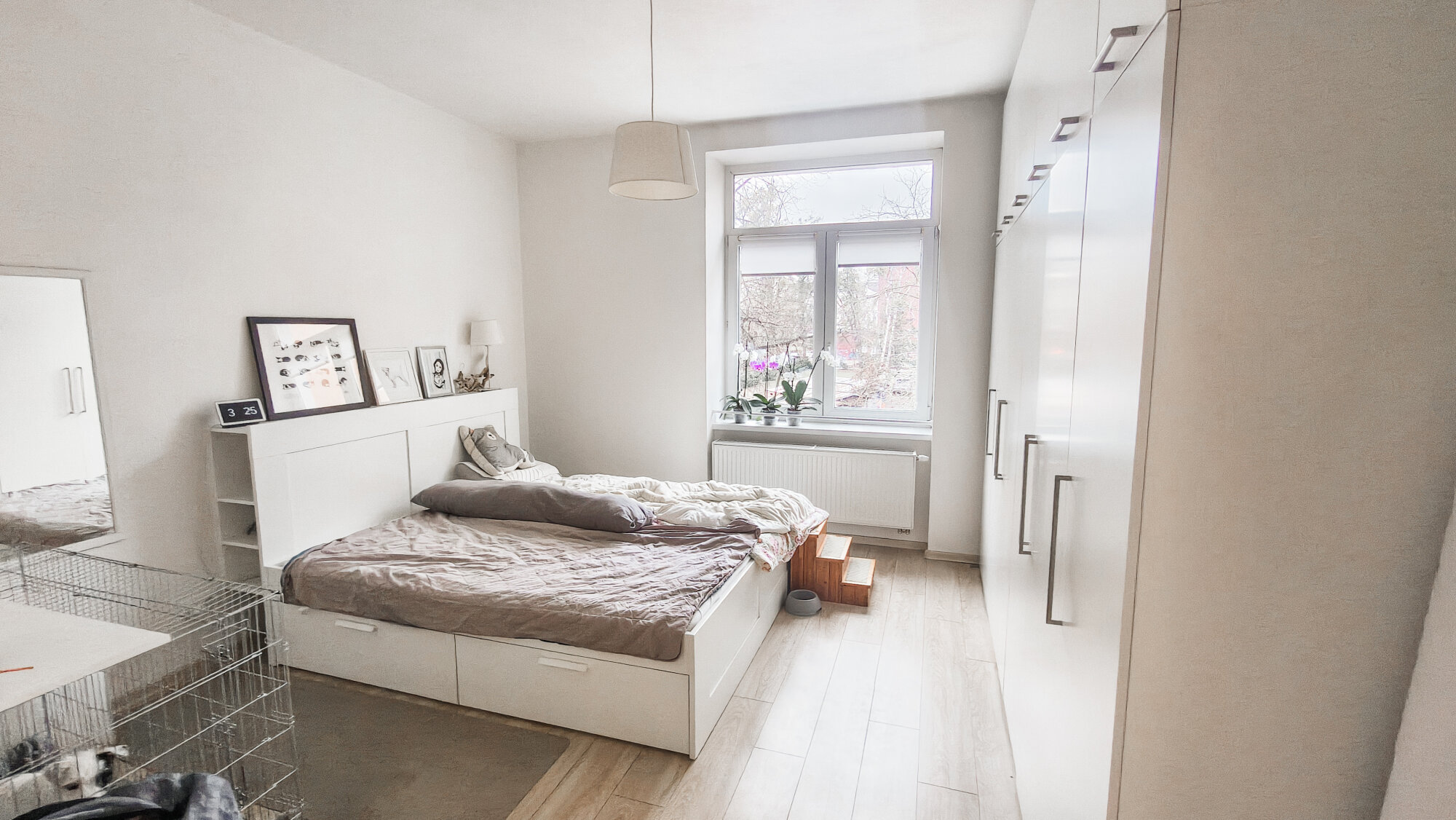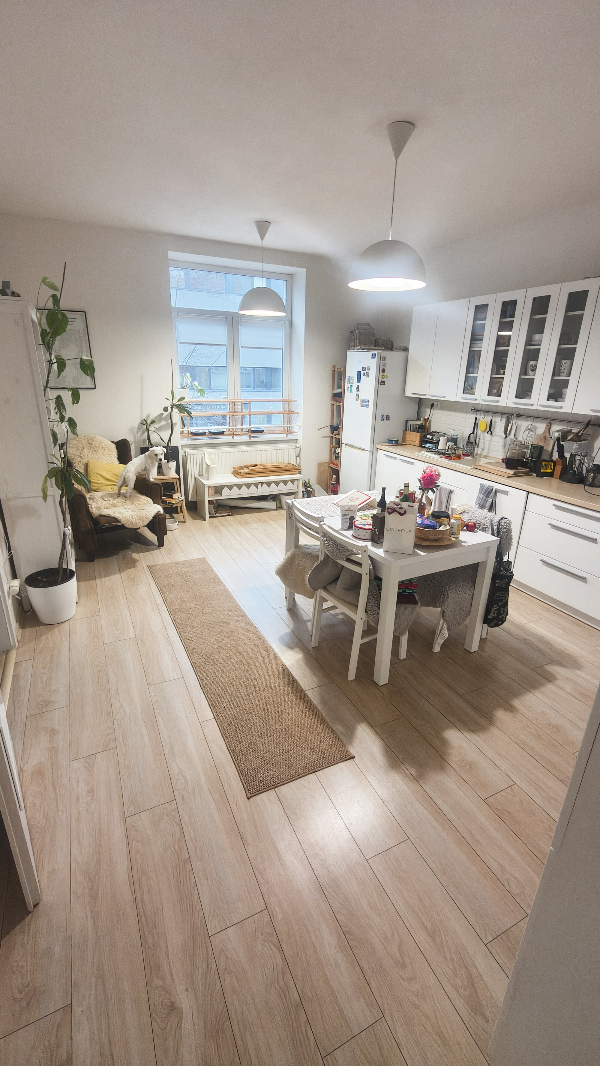 Priestranný presvetlený byt s veľkou kuchyňou a modernym bielym nábytkom. Nachádza sa na 1.ppschodí, výhľad na ulicu aj do tichého dvora. K dispozícii veľká kuchyňa, obývačka, priestranná spálňa, pracovňa, samostatná kúpeľňa a wc. V byte je funkčná pec na tuhé palivo.