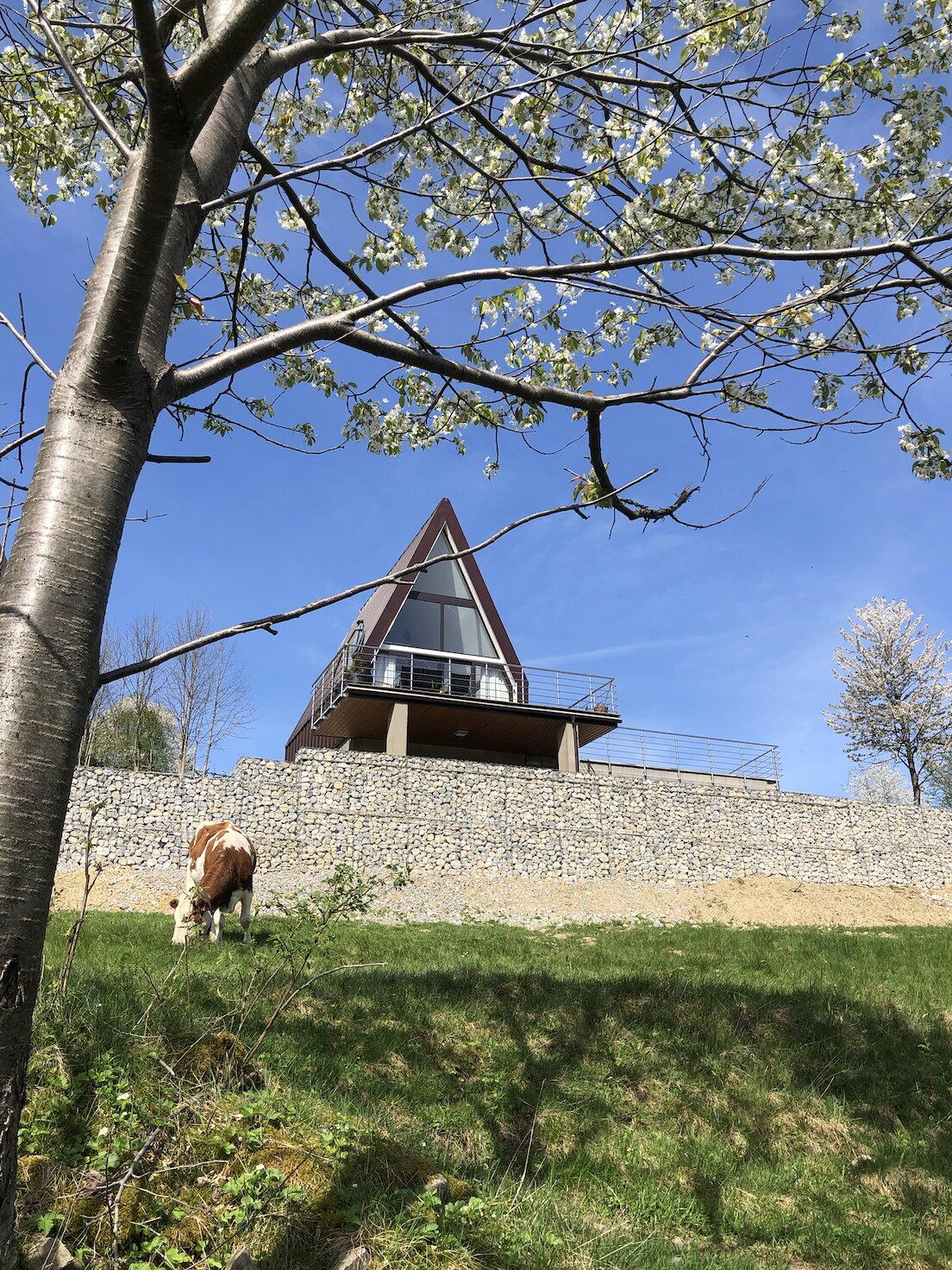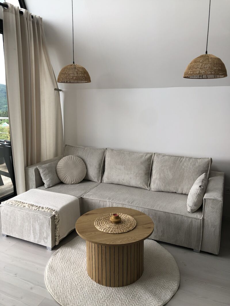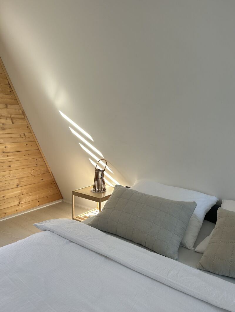 Chatka Áčko sa nachádza v tichej, prírodou obklopenej lokalite, kde máte skutočný pokoj. Žiadne preplnené rezorty, žiadny ruch áut. Výhoda tejto lokácie je jasná: súkromie bez izolácie. Ste dostatočne ďaleko od hluku civilizácie, ale stále dostupne od hlavných trás. Okolie ponúka priame napojenie na turistické chodníky a prírodné trasy. Terasa je orientovaná na otvorenú scenériu lesa a horských hrebeňov, čo znamená prirodzené svetlo počas dňa a nerušené večery bez svetelného smogu. Samotná chata je moderná A-frame cabin s pôdorysom 5 × 10 metrov, navrhnutá ako otvorený, vzdušný priestor. Tvar písmena „A“ nie je len dizajnový prvok – vytvára vysoký strop, množstvo prirodzeného svetla a pocit priestoru. Dominantou interiéru je otvorená denná zóna, kde sa prepája obývacia časť s kuchyňou. Vďaka preskleniu smerom na terasu je interiér neustále vizuálne prepojený s prírodou.