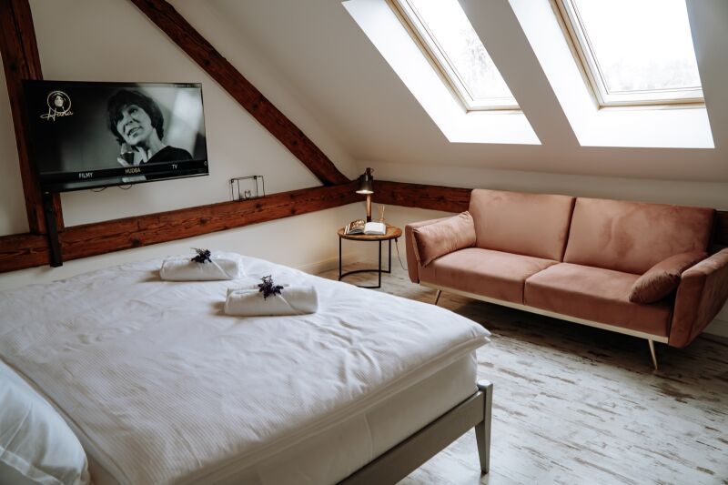 Vitajte na mieste kde sa stretáva minulosť so súčasnosťou, na mieste ktoré pohladí všetky vaše zmysly. Vitajte v srdci Hurbanova, vitajte v Apartmánoch Hana. Dva samostatné apartmány, ktoré pripomínajú Hanu na každom kroku.Môžete sa tu začítať do jej knižnice, vypočuť si platne, ktoré milovala, alebo len tak popíjať Hanine obľúbené víno Dunaj, pri tónoch jej šansónov. V špeciálnom TV menu budete mať možnosť pripomenúť si všetky piesne, filmy, koncerty, alebo klipy v ktorých Hana účinkovala. Veľký loftový apartmán 125m2 - 2x spálňa - 2x kúpeľňa s wc, - plne vybavená kuchyňa s priamym vstupom na terasu a záhradu. - trámový strop - wifi a klimatizácia - uzavreté parkovanie priamo na dvore - veľká záhrada s trávnikom kde sa nachádza zastrešené javisko
