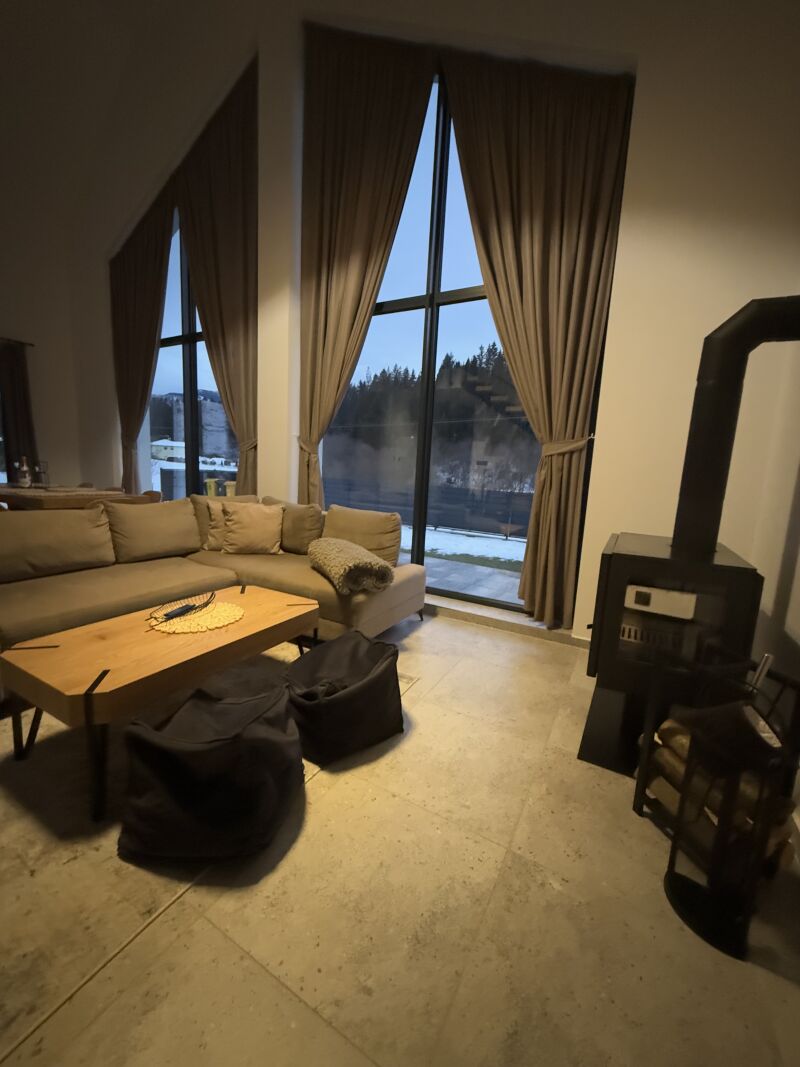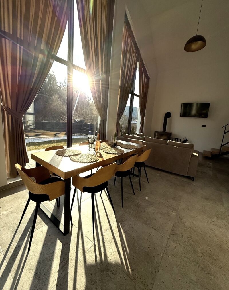 Štýlová horská chata s výmerou 135–140 m² a impozantným 4,5 m stropom, ktorý dodáva priestoru luxusný loftový charakter. Otvorený koncept, množstvo denného svetla a atmosféra hôr vytvárajú dokonalé miesto pre oddych aj výnimočné zážitky. Parkovanie pri objekte.
