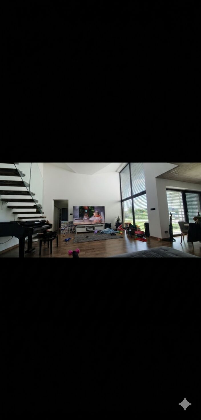 Máme obrovský 2 poschodový rodinny dom s 5 metrovým oknom a veľkym stropom nad ním. Moderny luster v tvare veľkej kocky s rôznymi svetelnými farbami. Veľké okna s prírodným svetlom celý deň ( samozrejme aj vonkajšie žalúzie na ovladanie diaľkovým alebo aplikáciou v telefóne.