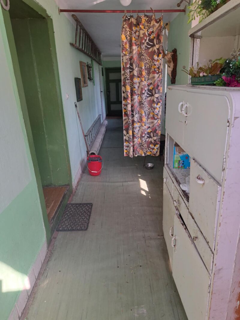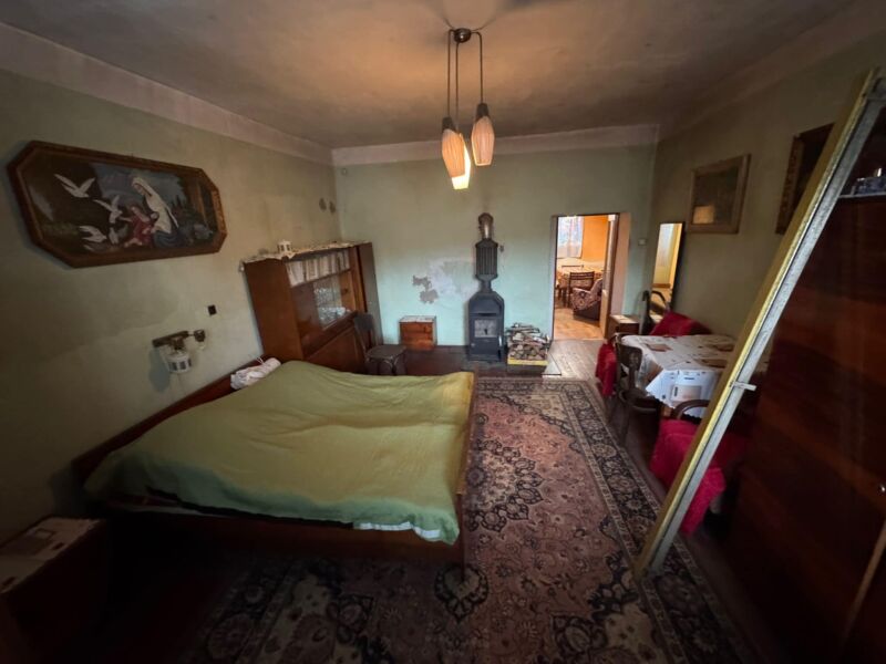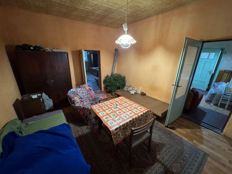 Pozemok: Dom stojí v mierne svahovitom teréne. Záhrada je zatrávnená s niekoľkými dospelými ovocnými stromami, čo poskytuje tieň a súkromie. Prístup: Dom sa nachádza priamo pri asfaltovej ceste, oddelený je nízkym dreveným plotom s betónovými stĺpikmi. Bonusy: Na dome sú osadené relatívne nové plastové vchodové dvere v dekore dreva, čo je jeden z mála modernizovaných prvkov. K domu patrí aj balkón/pavlač s kovovým zábradlím.Interiér je zariadený starším, funkčným nábytkom a pôsobí veľmi skromne.Vybavenie: V izbách nájdeme pôvodné drevené dvere, koberce s orientálnym vzorom a klasické „retro“ kredence. Na stenách je vidieť známky opotrebovania a vlhkosti. Kúrenie: V izbách sa nachádzajú lokálne piecky na tuhé palivo.Kuchyňa: Je vybavená starším sporákom na plynovu bombu,ale je tam aj funkčna piecka. Internet nie je, WC - latrina,kupeľňa- starsia rohova vaňa,