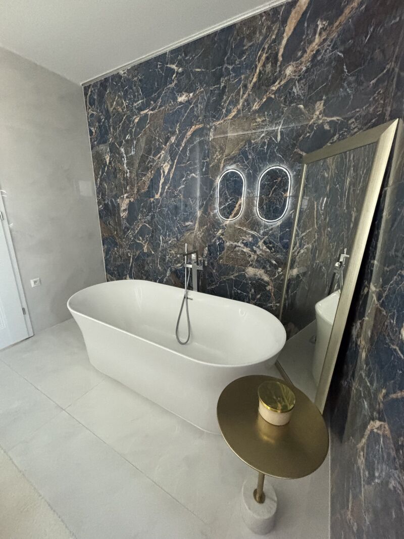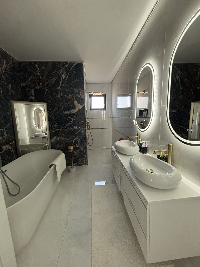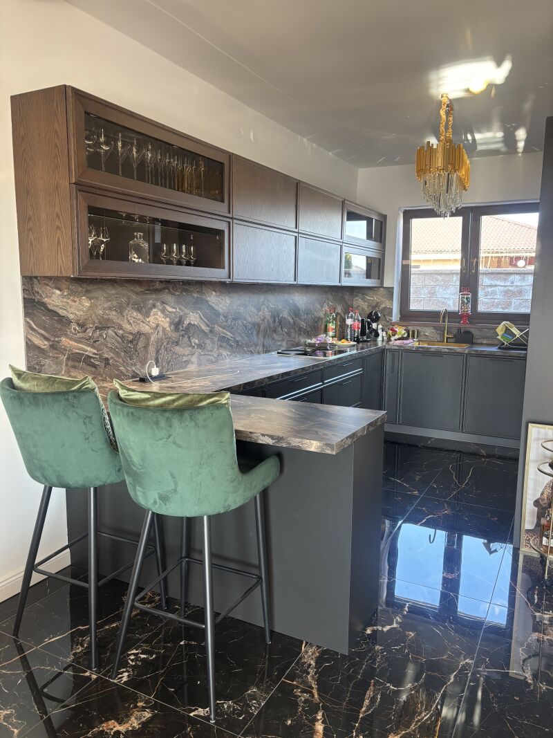 Dom je zariadeny luxusne do netradicnycb farieb s obrovskou vanou a zaujimavou luxusnou kuchynou. Zahrada okolo domu nieje dokoncena no vnutro domu je plnr zariadene. Dom je situovany v luxusnen stvrtk v Galante kde su same novostavby. Vymera domu je 125 m stv. Velke francuszke okna robia dom impozantnym. Poloha je na okraji mesta a parkovat sa da rovno pred domom.