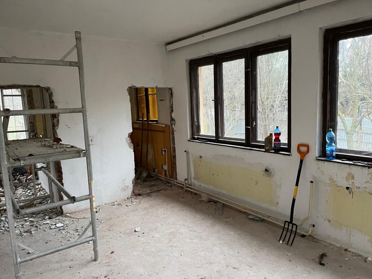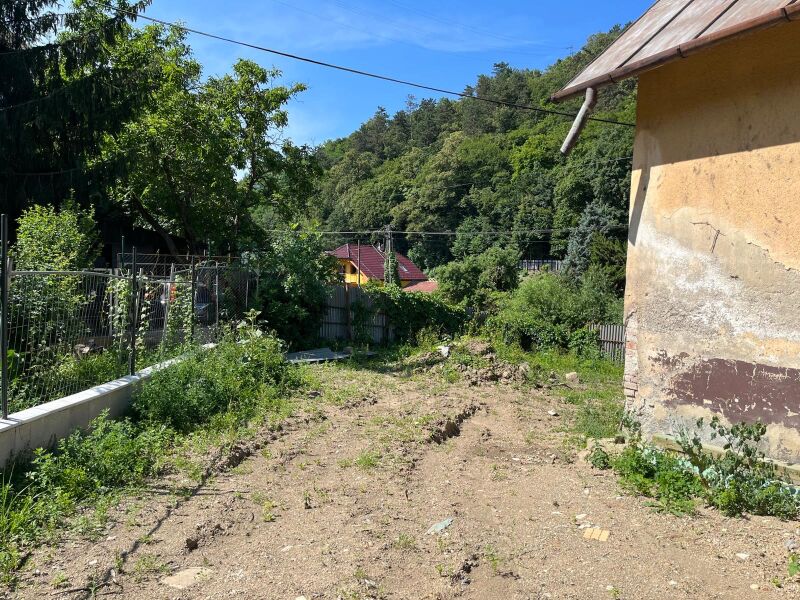 Stary rodinny dom, neobyvany, s interierom osekanym na tehlu, zahrada 520m2 s naletovou burinou