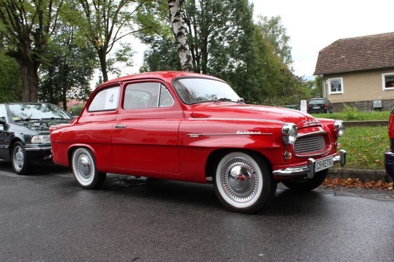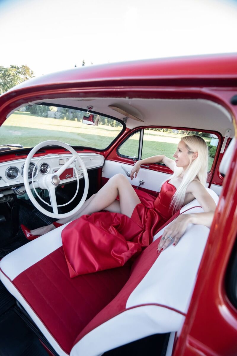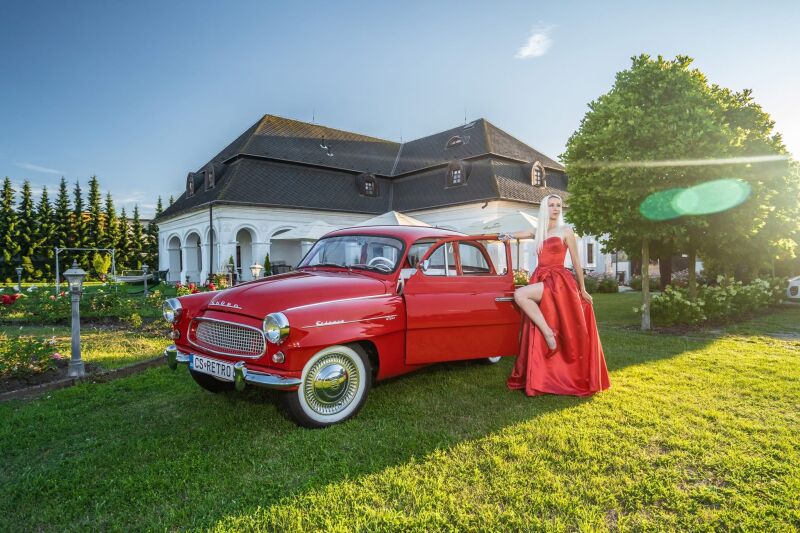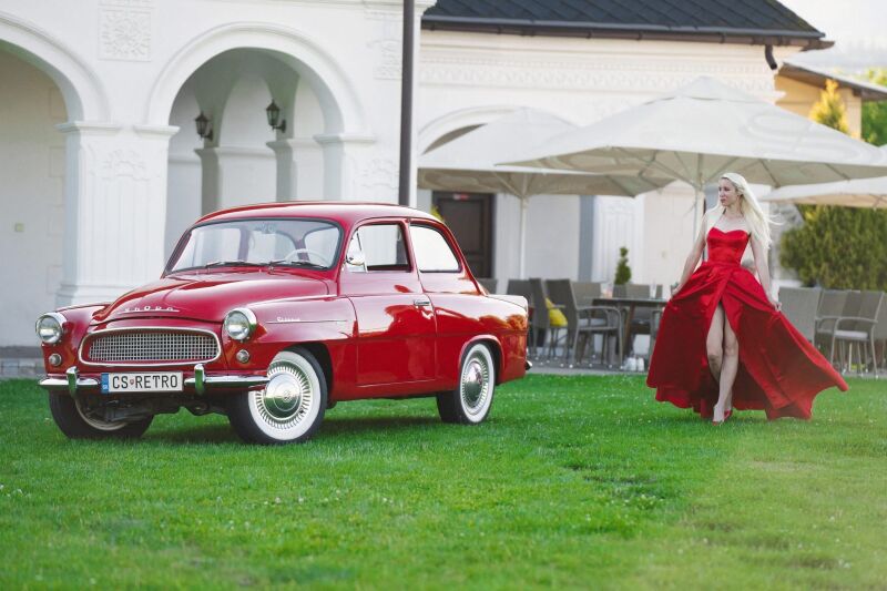 Červená znovu zrekonstruovana octavia 1963 vhodná na film svadbu a fotenie