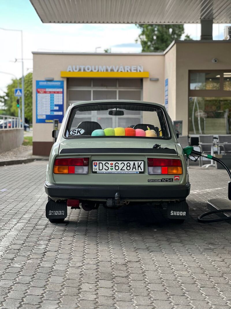 Škoda 125L vyrobená 8/1989 (jedna z posledných socialistických), auto na starých špz. Dokonca sa dostala do počítačovej hry Vivat Slovakia kde si na nej ľudia môžu zašoférovať. Auto je v pôvodnom stave v tzv. “patine” takže kde tu už na ňom vidieť, že má svoje roky, čo sa niekedy môže hodiť.