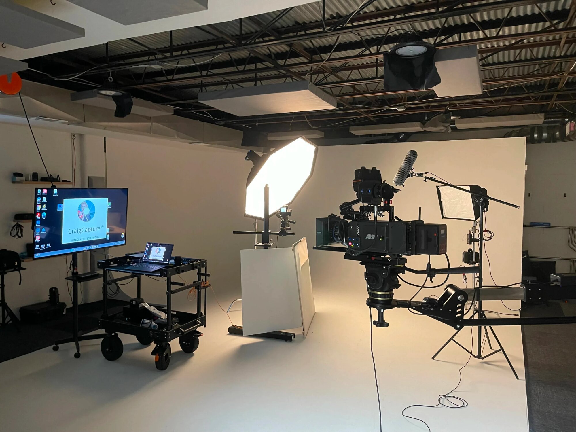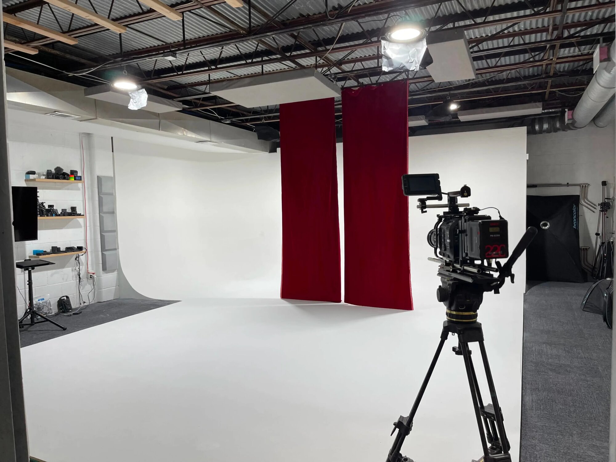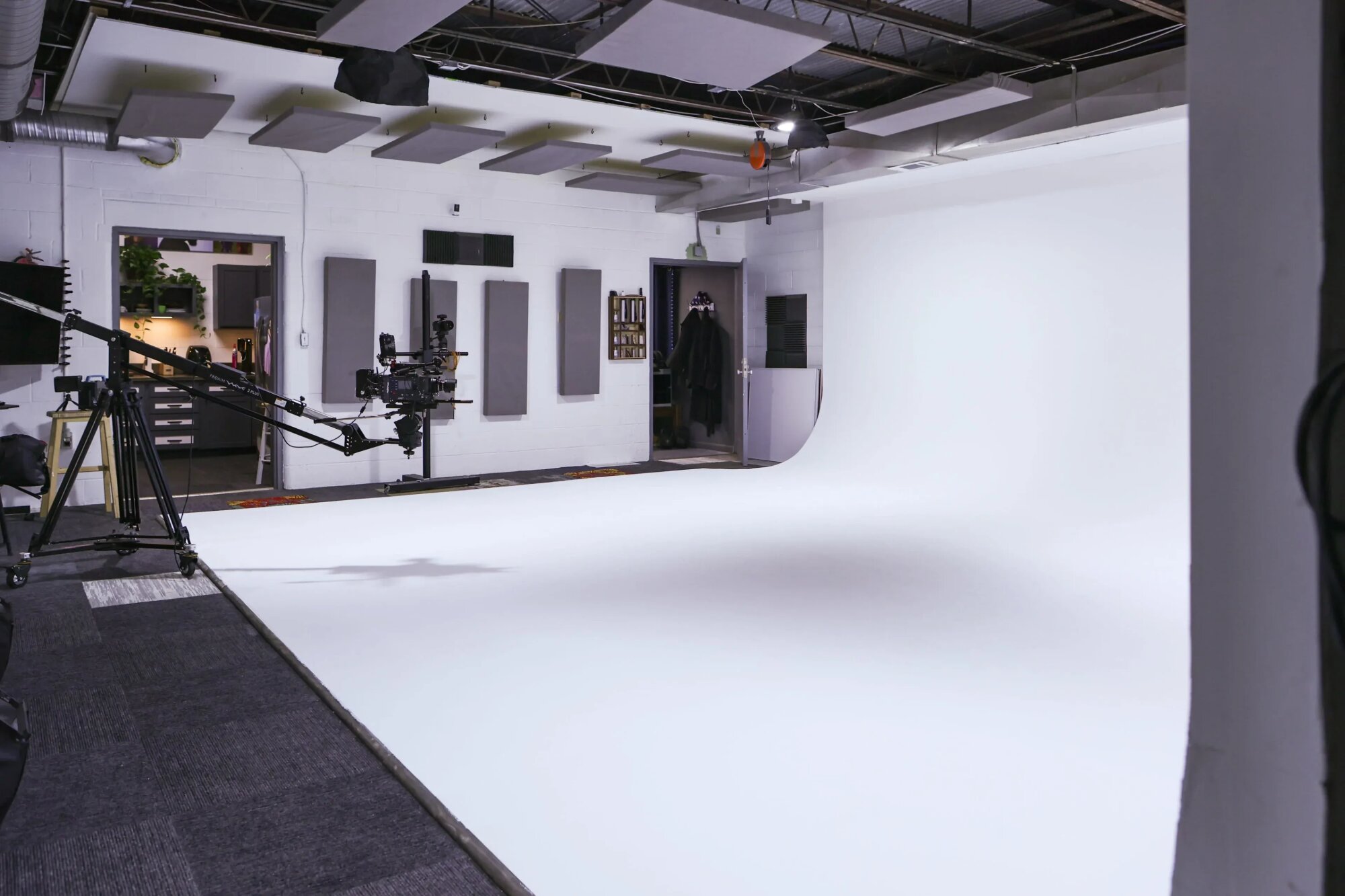 Čisté produkčné štúdio vhodné na foto aj video. Priestor je jednoduchý a ľahko sa prispôsobí rôznym scénam. Biele pozadie funguje dobre na rozhovory, produktové zábery, reklamy a online obsah. Je tu dosť miesta pre techniku aj menší až stredný štáb. Svetlo sa dá kontrolovať a priestor je tichý, takže sa dá pracovať bez rušenia. V zázemí je jednoduchý kuchynský kút a miesto na krátke pauzy. Všetko je riešené prakticky a funkčne.